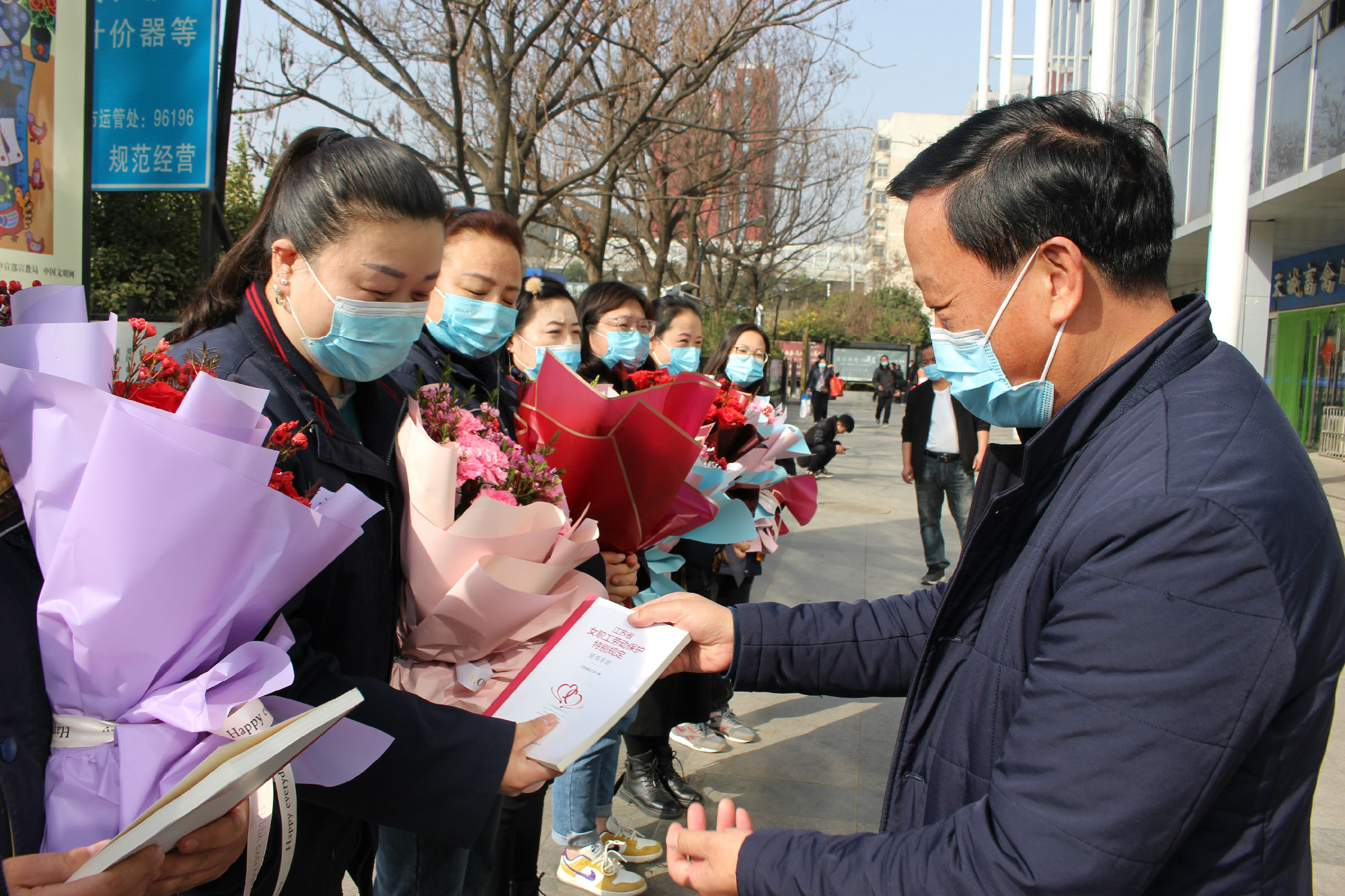 接著,袁夫松為女職工代表送去法律書籍《江蘇省女職工勞動保護(hù)特別規(guī)定》以及節(jié)日紀(jì)念品。據(jù)悉,此次三八節(jié)活動,還包含“情系女職工 法在你身邊”女工普法等系列活動,集團(tuán)通過微信公眾號“今日學(xué)法欄目”對《江蘇省女職工勞動保護(hù)特別規(guī)定》進(jìn)行宣傳解讀,工會還向女職工發(fā)放《工會女職工工作百問百答》等書籍共計(jì)200本,組織女職工座談會以及心理健康講座等。