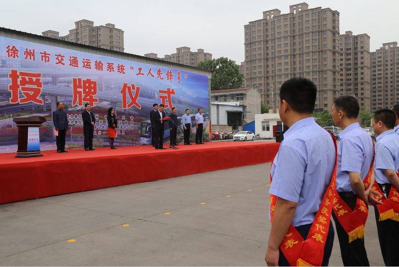 5月8日上午10點(diǎn),徐州市總工會(huì)在郭莊路停保場(chǎng)隆重舉行徐州市交通運(yùn)輸系統(tǒng)“工人先鋒號(hào)”授牌儀式。徐州市人大副主任、市總工會(huì)主席束志明,徐州市副市長(zhǎng)趙立群,市文明辦主任沈麗,市交通運(yùn)輸局局長(zhǎng)蔡前鋒,市總工會(huì)副主席劉洪印、副主席潘華,市交通運(yùn)輸局工會(huì)主席王培河以及公司董事長(zhǎng)、總經(jīng)理杜紅軍等領(lǐng)導(dǎo)出席了授牌儀式。來自公交公司、汽車客運(yùn)總站等交通運(yùn)輸行業(yè)的300余名員工參加了授牌大會(huì)。