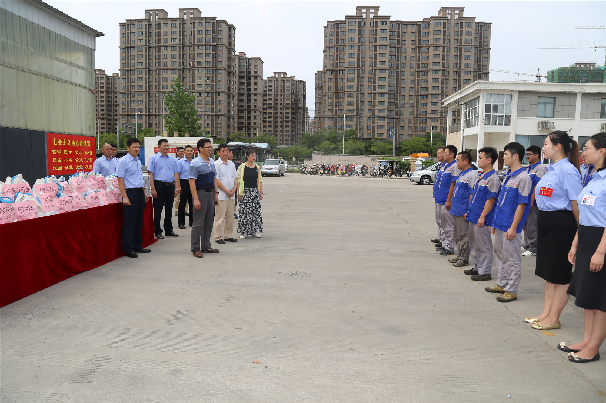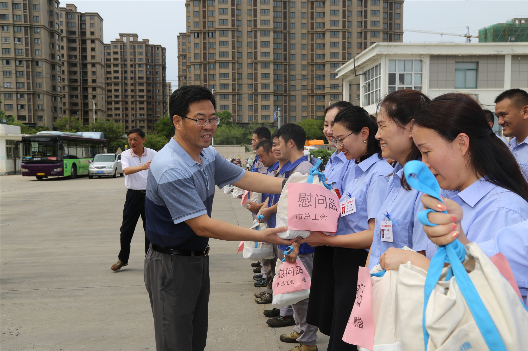 正值盛夏,近期我市持續(xù)高溫、濕熱多雨,持續(xù)攀升的炎熱天氣“烤驗(yàn)”著堅(jiān)守崗位的公交職工。三伏天里,工會(huì)娘家人總是心系一線職工安康,8月1日下午,徐州市總工會(huì)黨組成員、副主席王建民,副調(diào)研員馮相合等一行,在市交通運(yùn)輸局工會(huì)副主席巨玲和徐州公交公司總經(jīng)理馮陸陸,公司黨委副書(shū)記、紀(jì)委書(shū)記、工會(huì)主席竇同銀的陪同下,頂烈日冒酷暑來(lái)到郭莊路公交停車場(chǎng),看望慰問(wèn)了奮戰(zhàn)在高溫一線的公交職工,送來(lái)了高溫慰問(wèn)品,更送來(lái)了殷殷關(guān)愛(ài)和叮嚀,讓大家感受到了夏日里的絲絲“清涼”。