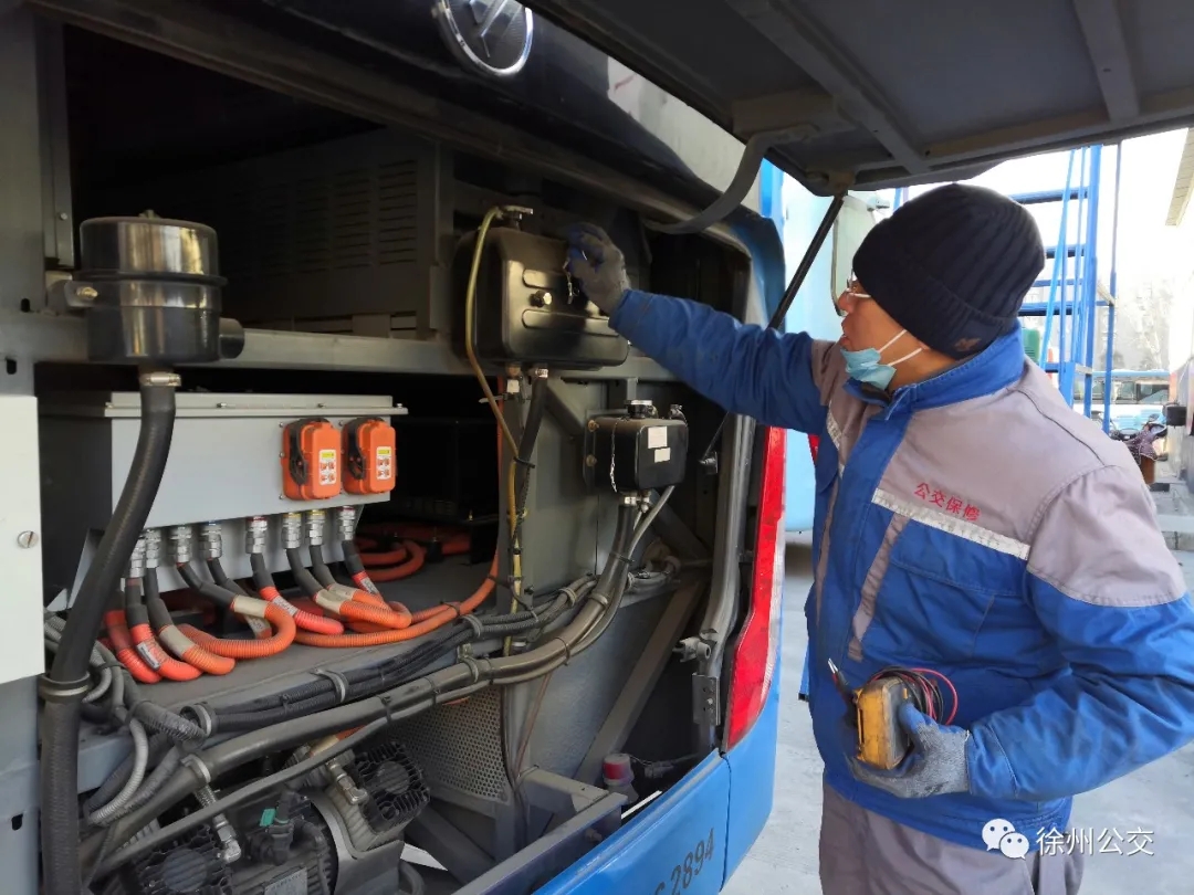 針對(duì)氣溫驟降,集團(tuán)積極做好車輛機(jī)務(wù)保障工作,提前對(duì)柴油車輛及安裝燃油水暖加熱系統(tǒng)的純電動(dòng)車輛更換低標(biāo)號(hào)柴油,防止出現(xiàn)結(jié)臘現(xiàn)象;做好管路防凍工作,對(duì)車輛的氣路管路、儲(chǔ)氣筒徹底放氣、放水;為了預(yù)防車輪制動(dòng)蹄片與制動(dòng)鼓、輪胎與地面之間出現(xiàn)冰凍現(xiàn)象,各單位要求駕駛員在出車前提前開(kāi)啟車載空調(diào)暖風(fēng)設(shè)備,收車后做好車輛駐車停放工作。同時(shí),在每個(gè)車場(chǎng)安排專人值守并做好修理人員、充電工的防寒保暖工作。