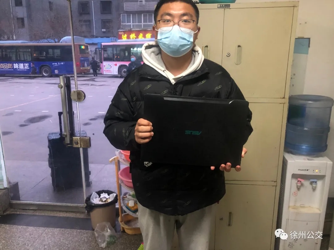 此時(shí),專(zhuān)1路1696號(hào)車(chē)到達(dá)徐州站,駕駛員王強(qiáng)開(kāi)始打掃車(chē)輛衛(wèi)生、對(duì)車(chē)廂進(jìn)行通風(fēng)、消毒,忽然,他發(fā)現(xiàn)車(chē)廂后座位上有一個(gè)藍(lán)色雙肩背包,打開(kāi)發(fā)現(xiàn)里面有一臺(tái)筆記本電腦。王強(qiáng)隨即撥打車(chē)隊(duì)電話(huà)報(bào)備,并把背包轉(zhuǎn)交給終點(diǎn)站工作人員登記保管。工作人員在包里找到了失主的聯(lián)系方式,很快聯(lián)系到失主陳先生。