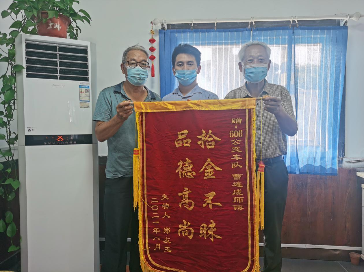 830日中午11點左右,市民鄭先生與同伴在大福源乘坐606路公交車趕往九七醫(yī)院就醫(yī),到醫(yī)院后發(fā)現(xiàn)錢包丟,鄭先生萬分著急,在同伴的提醒下,他來到606路韓山調(diào)度室尋找失物。果不其然,鄭先生的錢包被駕駛員曹連成師傅送到調(diào)度室妥善保管。鄭先生萬分感謝說道:錢包里除了現(xiàn)金和各類銀行卡外,還有醫(yī)???、社??ǎa(bǔ)辦十分麻煩,咱們司機(jī)師傅真是幫了大忙。”91日,鄭先生特意送來錦旗表達(dá)謝意。