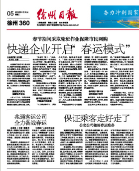 2月3日日報刊登徐州公交備戰(zhàn)春運(yùn)稿