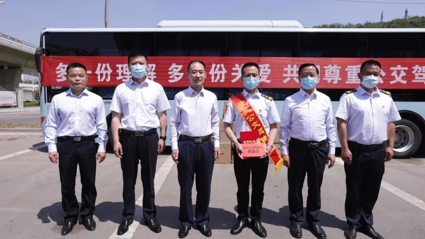 5月20日,是第四屆“520全國(guó)公交駕駛員關(guān)愛(ài)日”,為進(jìn)一步營(yíng)造關(guān)心關(guān)愛(ài)、理解尊重公交駕駛員的良好氛圍,增強(qiáng)公交駕駛員對(duì)公交事業(yè)的自豪感和歸屬感,當(dāng)日上午,交控公交集團(tuán)領(lǐng)導(dǎo)分組奔赴各公交場(chǎng)站、樞紐站開展慰問(wèn)活動(dòng),分別對(duì)2021-2022年度公交集團(tuán)“最美公交駕駛員”王博等8名同志進(jìn)行頒獎(jiǎng),并為在場(chǎng)的一線駕駛員代表送上了暖心的禮物和祝福。