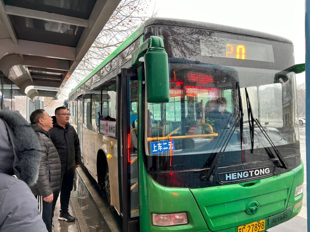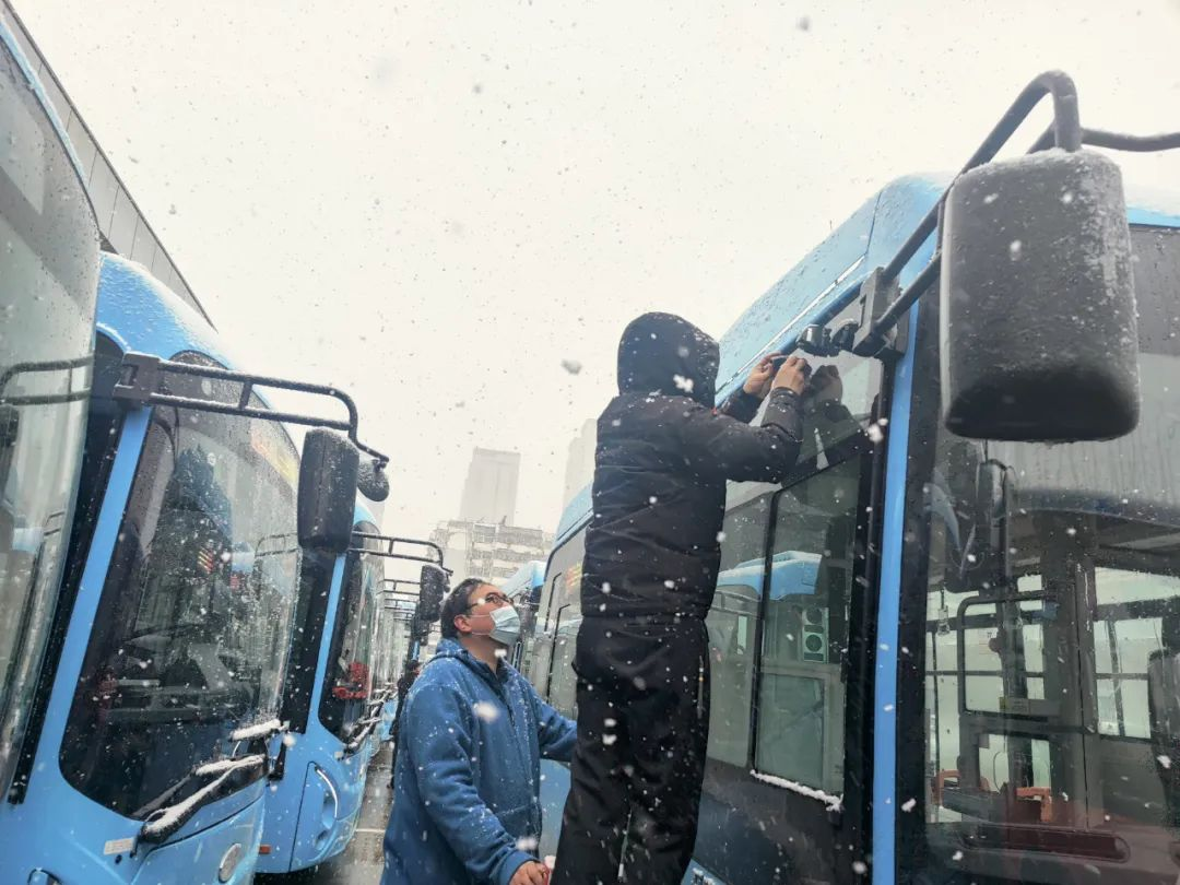 1月14日上午,徐州市氣象臺(tái)發(fā)布道路結(jié)冰黃色預(yù)警[Ⅲ級(jí)/較重],氣溫驟降,徐州迎來了2023年第一場(chǎng)冬雪。面對(duì)寒潮雨雪冰凍惡劣天氣,公交集團(tuán)立即啟動(dòng)特殊天氣應(yīng)急預(yù)案,集團(tuán)黨委委員、副總經(jīng)理丁玉華帶領(lǐng)安全環(huán)保部人員上線檢查,基層單位分管安全負(fù)責(zé)人以雪為令,多措并舉做好寒潮雨雪大風(fēng)天氣公交安全運(yùn)營(yíng)工作,保障市民安全便捷出行。