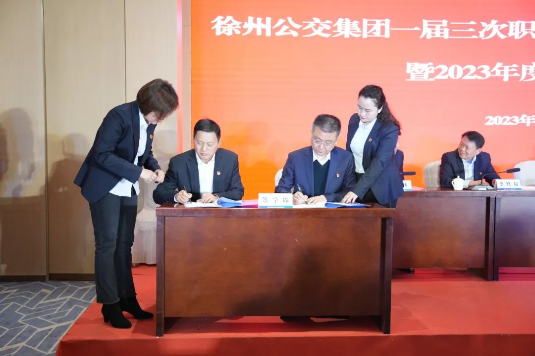 會議聽取并審議了2023年度工作報告和一屆三次職工代表大會會議決議,表決通過了5項草案,簽訂了2023年度經(jīng)營目標(biāo)責(zé)任書、安全目標(biāo)責(zé)任書和工資專項集體合同、女職工權(quán)益保護(hù)集體協(xié)議,會議表彰了2022年度集團(tuán)先進(jìn)集體和先進(jìn)個人,城北巴士公司、新城巴士公司、供應(yīng)鏈公司、安全環(huán)保部、經(jīng)營管理部等5家單位、部門作了大會交流發(fā)言。