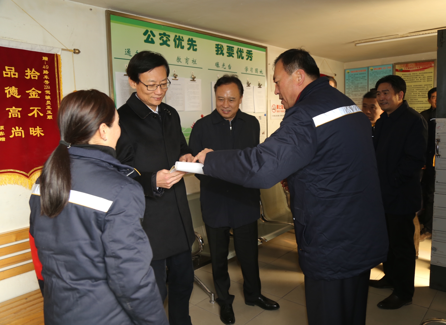 期間,杜紅軍就公交智能化建設(shè)、純電動(dòng)公交車運(yùn)營情況、車輛維修保養(yǎng)流程等工作向市領(lǐng)導(dǎo)作了詳細(xì)的匯報(bào)。趙立群對(duì)公交車輛發(fā)展、智能化建設(shè)等工作給予了肯定,并指出掌上公交和智能調(diào)度系統(tǒng)的建設(shè),實(shí)現(xiàn)了運(yùn)營調(diào)度的可視化、智能化,使市民出行更加方便,希望公交公司不斷完善智能調(diào)度系統(tǒng),使公交運(yùn)營更加規(guī)范有序,為乘客提供更加干凈、溫馨、方便、快捷的乘車環(huán)境。