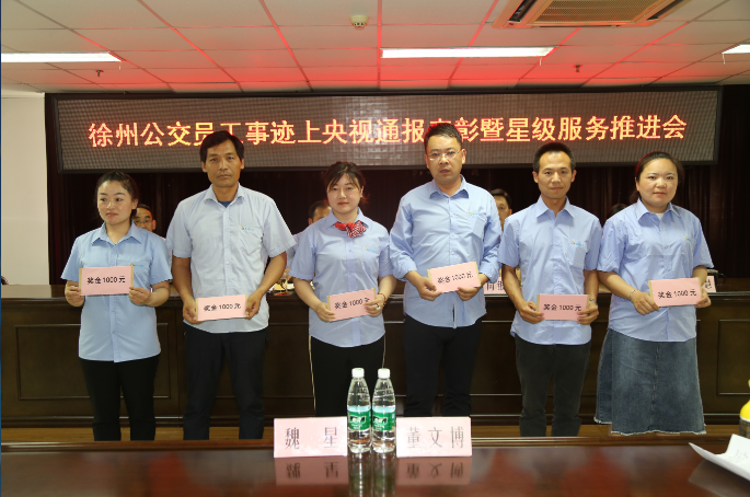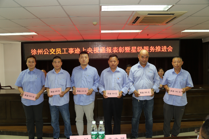 5月30日下午,公司隆重召開了“徐州公交員工事跡上央視通報(bào)表彰暨星級(jí)服務(wù)工作推進(jìn)會(huì)”,對(duì)近30多天來受到市以上新聞媒體,包括被央視宣傳報(bào)道的救助病人、照顧老人、見義勇為、優(yōu)質(zhì)服務(wù)的優(yōu)秀員工進(jìn)行了集中表彰獎(jiǎng)勵(lì),公司董事長(zhǎng)、總經(jīng)理杜紅軍,工會(huì)主席竇同銀,調(diào)研員祖伯鴻及各單位分管領(lǐng)導(dǎo)、服務(wù)主管、政工員、先進(jìn)典型等一線員工代表82人參加會(huì)議。
